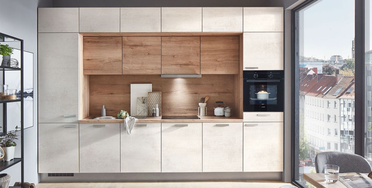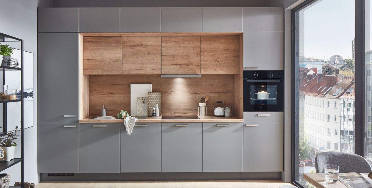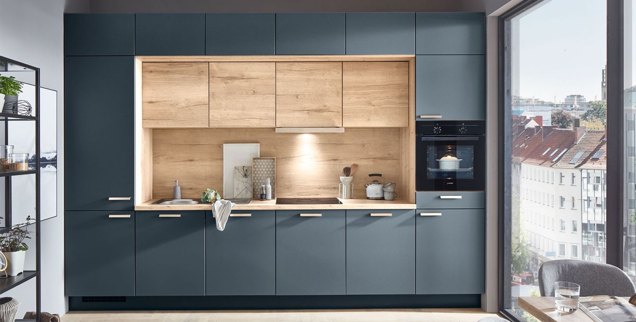 Inklusive Einbaubackofen schwarz Junker JF1100061 Energieeffizienzklasse A, Glaskeramik Kochfeld Junker JR36DT54, Flachschirmhaube Junker JD36AL51 Energieeffizienzklasse B, Kühlschrank Junker JC40KCSE0 Energieeffizienzklasse E, Einbauspüle Edelstahl Rodi Okio Line 85 Deep, Wandschränken mit Klappe.